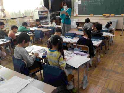 サツマイモ掘りの仕方を土方さんに伺い、芋ほりを始めました。 土方さんには、収穫しやすいように事前に畑を整えるなど、こどもたちが作業しやすいように様々なご配慮をしていただきました。大変にありがとうございました。 10/29 1年生 音楽