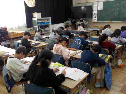 どの子も丁寧に字をなぞり、書き込んでいました。 体育は、校庭で行いました。2学級ともかけっこを楽しみました。 走る遊びから体を慣らしていき、チームごとにリレーをして楽しみました。 風は冷たかったですが、こどもたちは、元気いっぱい走り回っていました。 12/1 1年生 特別活動