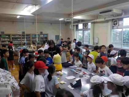 9/9 1年生 算数![]() ![]() ![]() ![]() ![]() ![]() 10より大きいものの数え方を算数ブロックで確かめたり、説明し合ったりするなど、工夫して学習しました。 9/9 1年生 図工「さかなのおうさま」![]() ![]() ![]() ![]() ![]() ![]() 王様のイメージを発表し合い、クレパスで描きます。 「かっこいいおうさまをイメージしたよ」 「かわいいおうさまだよ」 と、「おうさま」のイメージを教えてくれました。 次の時間は、絵の具での色塗りです。 どのような「おうさま」になるのか楽しみです。 9/9 3年生 朝活![]() ![]() ![]() ![]() ![]() ![]() ボールやフラフープなどの教具を使って、楽しく活動しました。 9/9 5年生 朝活![]() ![]() ![]() ![]() ![]() ![]() 校庭は、曇り空だったこともあり、暑さ指数も基準内でした。 長なわやボールで遊んだり、鉄棒で技を見せ合ったりと、工夫して活動しました。 9/9 重陽の節句こんだて![]() ![]() 9月9日の重陽の節句は、別名『菊の節句』と呼ばれています。あまり聞き慣れない節句ですが、奈良時代には、この日に菊の花びらをうかべたお酒を飲んだり、菊の花を使った料理を食べたりして、長生きを願ったそうです。今日は、みなさんの健康を願って、黄色い菊の花びらを使った『黄菊のあえもの』を作りました。 9/8 3年生 枝豆の収穫(学童農園)![]() ![]() ![]() ![]() ![]() ![]() はじめに土方さんのお話を伺いました。 今年は、猛暑や雨不足で十分に成長しきれなかったそうです。 しかし、こどもたちは、嬉しそうに枝豆の収穫を楽しんでいました。 こどもたちへの温かな声掛けと学童農園の維持や管理等、大変にありがとうございます。 9/8 家庭科作品展示![]() ![]() ![]() ![]() ![]() ![]() 家庭科室に手縫いの作品が並びました。 休み時間に案内の放送が入ると、たくさんの子たちが作品を見に家庭科室にやってきました。 「早く家庭科やりたい!」 「6年生、すごい上手!」 と、目をきらきらさせて作品を楽しんでいました。 9/8 焼肉チャーハン![]() ![]() 今日の主食の焼肉チャーハンは新メニューです。大量のごはんや具を炒めるのは大変で、パラパラに仕上げるのはとても難しい料理です。調理員さんが、全校分をお風呂の湯舟くらい大きな釜でごはんと具を炒め合わせてくれました。 9/5 ご対応ありがとうございました![]() ![]() こどもたちは、教員による指導や放送による指示をしっかり聞き、スムーズに下校することができました。きょうだい間で声を掛け合って一緒に帰る子たちもいました。教員は、一斉下校訓練で担当した通学路のポイントを中心に下校の見守りを行いました。改めて、避難訓練等の「日頃の備え」の重要性を感じました。 9/5 黒の日こんだて![]() ![]() 9月6日の『黒の日』にちなんで、黒い食べ物をたくさん使いました。黒い食べ物の一つ、黒ゴマは、白ゴマに比べて皮が厚く、香りやコクが強いのが特徴です。今回は魚のソースに使いました。他の黒い食材も探してみてください。 3時間目終わりに給食室に向かっていると、4年1組の子たちが名前を呼んで声をかけてくれました。そして「昨日のトースト2枚食べたよ!」「私の、野菜が大好きなエピソード教えてあげる!1年生の時にサラダ9回おかわりしたことあるんだ〜!」「私はスープを5杯食べたことがあるよ!」「給食おいしい!ありがとうございます。」と話してくれて、とてもうれしかったです。調理員のみなさんにもお伝えしようと思います。 9/5 給食後、下校となります![]() ![]() 給食後、13時10分に下校を開始いたします。 急な下校時刻変更によりご家庭の都合がつかない場合は、学校にご連絡ください。 十二小学童クラブを利用される児童は、学童へ引率します。 民間学童を利用されている児童は、お迎えの時間まで学校で待機させ、引き渡します。 急な変更でご迷惑をお掛けしますが、どうぞよろしくお願いいたします。 9/4 ハンガリーシチュー![]() ![]() ハンガリーシチューは、本場ハンガリーでは『グヤーシュ』と呼ばれています。ハンガリーを代表する味ともいわれる料理です。赤い色は、トマトの他に、たっぷり加えるパプリカパウダーによるもので、辛みはなく、うまみたっぷりのスープです。 ハンガリーシチューもキャロットドレッシングサラダも人気で、みなさんよく食べていました。 9/4 2年生 国語 生活![]() ![]() ![]() ![]() ![]() ![]() 生活科では、ミニトマトの観察カード作りをしました。ポケットサイズのブック型カードの表紙に嬉しそうに名前や題名を書き込んでいました。 9/4 避難訓練![]() ![]() ![]() ![]() ![]() ![]() 雨天のため、こどもたちは、防災頭巾をかぶり、廊下に整列するところまで行いました。 廊下に整列した後、教員が人数を確認し、管理職に報告しました。 地震のあと、火災が起こったことを想定しての訓練です。こどもたちは、素早く防災頭巾をかぶり、ハンカチで口を押えて静かに整列していました。 9月1日は「防災の日」、9月5日までの1週間は、「防砂週間」です。 自然災害の備えとして、毎月の避難訓練で、自分と周