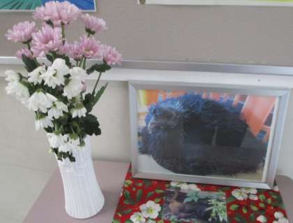 7月から校長室で過ごしていたみんな大好きチャボのクロンさんが老衰のため亡くなりました。大変残念ですが、こどもたちはもちろん、地域の皆様、保護者の皆様にもお世話をしていただいたクロンさんは幸せだったに違いありません。 校長前に机を置いて、クロンさんの写真とお花をお供えました。 クロンさん、ありがとう。(校長) ![]() ![]() ![]() ![]() ![]() ![]() |