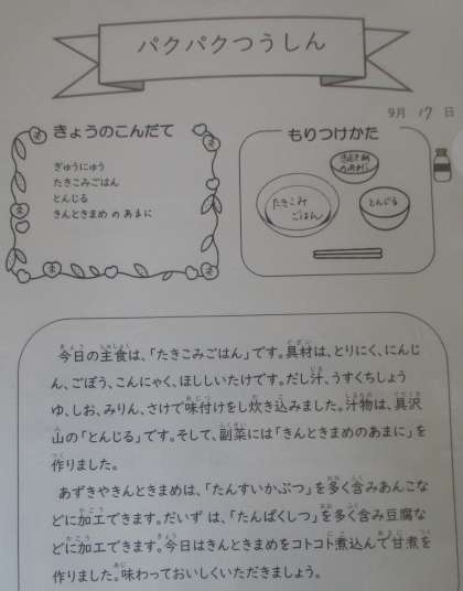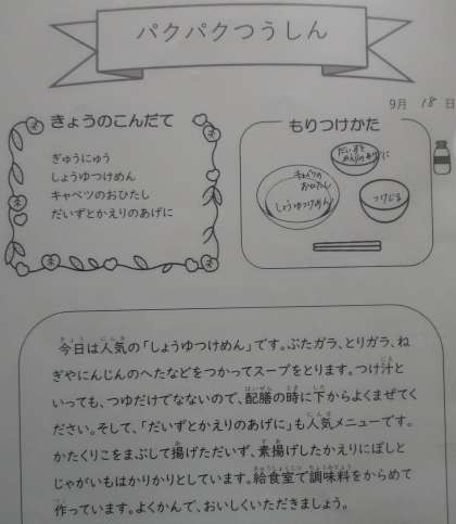 以前学習したことを生かし、絵の具を混ぜて自分の好きな色をつくりました。 横にまっすぐ線を引くのは、意外と難しいです。 ちょうどよい水の量を探しながら取り組みました。 ![]() ![]() 2年生 体育「フープ遊び」![]() ![]() ![]() ![]() 9月17日の給食![]() ![]() ![]() ![]() みんな大好き クロンさんが亡くなりました