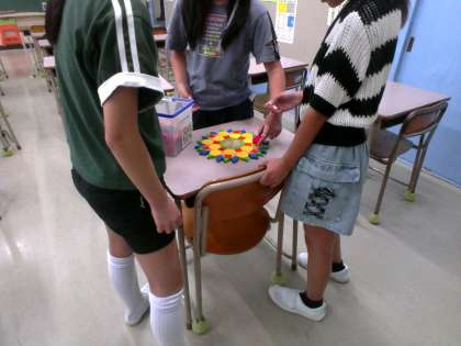昼休み、たてわり班に分かれてゲームを行いました。6年生のリードの下、椅子取りゲーム、爆弾ゲーム、伝言ゲーム、ハンカチ落し、イントロ曲当てゲームなど、それぞれの班で準備したゲームを楽しみました。