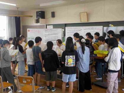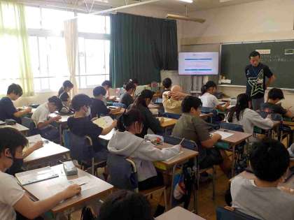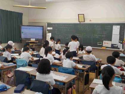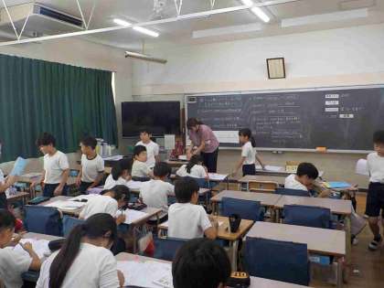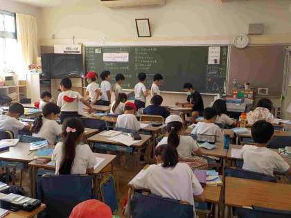 9/30 よみきかせの会![]() ![]() ![]() ![]() 今回は、けやき学級が対象でした。 「給食番長」や「いちにちぶんぼうぐ」を読み聞かせしていただきました。 「うふっ」 「おおーっ!」 など、こどもたちは、笑いや驚きの声を上げながら楽しそうに聞いていました。 保教会の皆さん、ありがとうございました。 9/30 3年生 算数![]() ![]() ![]() ![]() ![]() ![]() 「16000」は、 ・10000と6000を合わせた数 ・20000から4000を引いた数 ・1000を16個合わせた数 など、様々な捉え方があります。 様々な式に表すことで違いを捉えました。 授業の最後に、練習問題を解き、学習内容を確認しました。 9/30 【図書コラボメニュー】スパゲッティナポリタン![]() ![]() ![]() ![]() ![]() ![]() ★読書旬間 図書コラボメニュー★ 今日は図書コラボメニュー第三弾です。『おいしそうなしろくま』より、「スパゲッティナポリタン」です。しろくまさんが入ってみたいケチャップ味の「ウインナーと ピーマン、グリンピース、たまねぎが はいっているスパゲッティ」を再現しました。 昇降口そばの栄養黒板のあたりに、図書コラボメニューの展示しています。今日の給食の写真を貼っていると、「これは今日の給食?白いのは何?(ごまめケーキの粉糖のこと)」、「ひやしうどん(9/25の給食)、めっちゃおいしかった!みんなおかわりして、次の体育でうごけなかったんだよ!」、「昨日のすき焼き風煮おいしかったよ!」、「明日はうさぎりんごなんだ〜。楽しみ!」と、たくさんの子が話しかけてくれました。 駆け寄ってきて「今日のケーキ、絶対また作ってください!」と声をかけてくれた子もいて、とてもうれしかったです。 9/30 6年生 音楽 家庭科![]() ![]() ![]() ![]() 音の高さやリズムを意識して、ピアノの音や友達の声をよく聴きながら、歌を合わせていました。 家庭科では、ミシンでポケットを仕上げる段階に入りました。学習ボランティアの皆さんの協力もあり、徐々に仕上がっています。展覧会に向けて気持ちも高まってきています。 9/30 6年生 外国語 国語![]() ![]() ![]() ![]() 真剣に英語を聞き取り、問題に答えていました。中には、うなずいたり首を横に振ったりと、話の内容をよく理解しながら聞けている子もいました。 国語の書写では、「友情」を毛筆で書きました。書き順に気を付けて「とめ」「はね」「はらい」を丁寧に書いていました。 9/29 5年生 理科 社会![]() ![]() ![]() ![]() 顕微鏡で実際に花粉を見たり、学習者用端末で様々な植物の花粉を調べたりすることで、様々な花粉を比較して違いや特徴を話し合いました。小さな花粉をよく見て、丁寧に書き込んでいました。 社会科では、食料の輸入について、よさや問題点を調べました。 消費者と生産者の両方の立場から調べ、考えることで、食料輸入について多面的・多角的に捉えることができました。 9/29 5年生 体育 国語![]() ![]() ![]() ![]() 友達と協力して、倒立前転や側方倒立回転などの技に挑戦しました。 学習者用端末を活用して、動画で動きを確認したり、互いに技を見せ合ったりして工夫して学習しました。 国語では、「おくりびと」を学習しました。 場面ごとの内容を確認して、あらすじをまとめました。 本文を振り返りながら、登場人物や場所、時などを捉えて、読み込むことができました。 9/29 1年生 国語![]() ![]() ![]() ![]() ![]() ![]() 国語の授業では、それぞれのクラスで、「ことば見つけ」「新出漢字の学習」「しりとり」を学習しました。 「ことば見つけ」では、教科書の表にある平仮名の中から知っている言葉を見付けました。 ノートには、見付けた言葉であふれていました。 「漢字の学習」では、今まで学習した字を思い出し、形・はね・はらいなどに気を付けて丁寧に練習しました。 「しりとり」では、知っている言葉でしりとりをしていきました。中には、片仮名で書くものもあり、平仮名・片仮名を確認しながら、丁寧にノートに書き込みました。 こどもたちは、楽しみながら言葉を確認し、語彙を増やしていました。 9/29 【図書コラボメニュー】すき焼き風煮![]() ![]() ★読書旬間 図書コラボメニュー★ 図書コラボメニュー第二弾は『にくにくしろくま』より、すき焼き風煮を作りました。しろくまさんは、「お肉と一緒にぐつぐつされたい!」と思っているそうです。十二小のすき焼き風煮も、お肉や焼き豆腐、しらたき、ねぎ、しいたけなどの具材に、あま〜い つゆ の味がしっかりしみこんでおいしく仕上がりました。 9/26 けやき学級 体育![]() ![]() ![]() ![]() ![]() ![]() リズム遊びを通して、体の部位を意識して動かします。 自分の考えた動きを相手に伝えたり、友達の動きを真似したりしながら、様々な動きを身に付けることをねらいとしています。 二人一組になり、相手の動きを真似する「ミラーリング」やポンポンを持って踊る「夏祭り」などで、様々な動きをやりながら身に付けていきました。 様々な学年が一緒に踊ることで、上級生が手本となり、学び合いが深まりました。
