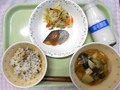 2学期が始まり、2週間が経ちました。 9月は、めざましスイッチ朝ごはん月間です。 こだいらめざましみそ汁は、「まごわやさしい」の具材が入った、具だくさんのみそ汁です。 みそ汁1杯で、たんぱく質も野菜も摂れるため、朝ごはんにもおすすめの料理です。 9月の献立表には、作り方も載せているので、ぜひおうちでも作ってみてください。 にこにこタイム2
