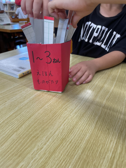 図書室では「わくわく読書くじ」が引けます。くじの紙には、本との出会いのヒントが書いてあります。どんな本と出会えるかは、引いてからのお楽しみ! たくさんの本にふれて、すてきな読書週間にしてほしいです。 こだいらめざましみそ汁