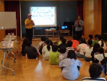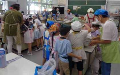 ・牛乳 ・ミルクパン いちごジャム ・鮭とアスパラのグラタン ・ミネストローネ 今日は、鮭を使ったグラタンを作りました。小麦粉とバターを炒めてなめらかなホワイトソースを作り、具材と絡めてチーズをのせてこんがり焼きました。パンにもよく合う味付けで、パンと一緒に食べていた児童も多かったです。 ![]() ![]() 4年社会出前授業![]() ![]() 専門の方を招いての出前授業の中では、クイズに答えたり、グループで実験をするなど体験的に学びました。 9月24日(水)の給食