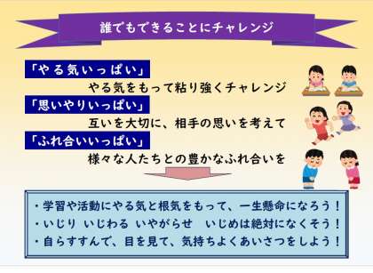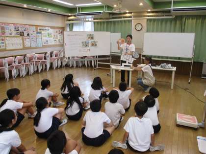 バランスよく栄養を摂取するようにしないと健康を害する可能性があることについて、栄養士の先生が自作の教材を用いてわかりやすく指導してくださりました。子どもたちはみんな真剣な表情で栄養士の先生の話を聞いていましたので、これからもバランスのよい食事で健康な体づくりに努めてくれることでしょう。 夏休みのチャレンジ!
