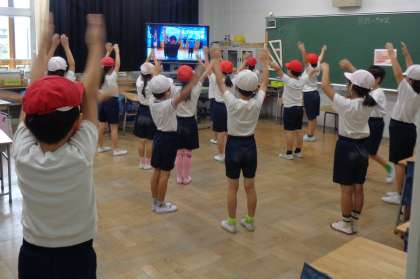 ・牛乳 ・ゆかりごはん ・ホキの竜田揚げ ・キャベツの塩こんぶあえ ・とうがんのみそ汁 今日はホキの竜田揚げを作りました。魚を醤油ダレに漬け込んで片栗粉をまぶして揚げて作ります。竜田揚げは、揚げた時に醤油の色が赤くなり、片栗粉が白く浮かぶ様子が、もみじが流れる竜田川に見立てられたことからその名がついたと言われています。まだまだ暑い日が続いていますが、また紅葉が近づいた頃に出そうと思います。 ![]() ![]() 体育委員会集会![]() ![]() ![]() ![]() 運動会が近いので、ラジオ体操のコツをていねいに教えてくれました。 画面を見ながら、各教室でもチャレンジしていました。 9月29日(月)の給食