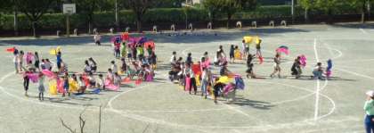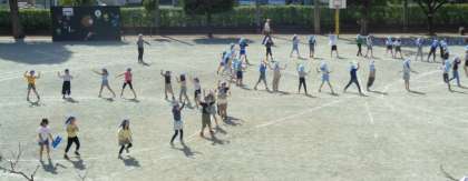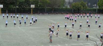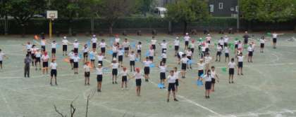 ・秋の味覚たきこみごはん ・ひじきの厚焼き卵 ・小松菜と大根の無げんサラダ ・お月見ポンチ 10月6日は『中秋の名月』、十五夜です。秋の作物の実りや収穫に感謝する日です。そんな日にぴったりの献立を6年生が考えてくれました。“秋の味覚たきこみごはん”には、さつまいもがゴロゴロ入っていて秋を感じられるたきこみごはんでした。”小松菜と大根の無げんサラダ”は、無限(いつまでもたくさん)に食べられることをアピールしたネーミングです。“お月見ポンチ”は、夜空をイメージしたぶどうジュースのフルーツポンチに、満月をイメージしたかぼちゃの白玉団子をのせました。(←6年生のアイデアです)ぶどうジュースの色が濃くて本当の夜空のようで、給食でもお月見を楽しむことができました。 ![]() ![]() 6年 運動会練習![]() ![]() ![]() ![]() 自分たちで振付を考え、教え合いながら練習してきました。 扇子を使って踊るパートもあります。 10月2日(木)の給食