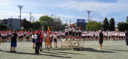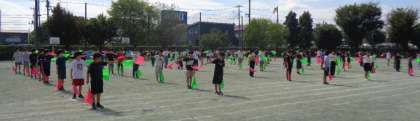 ・牛乳 ・セルフフィッシュバーガー (バンズパン・ホキフライ・ゆでキャベツ) ・彩りやさいのミルクスープ 今日は、今年2回目のセルフフィッシュバーガーでした。六小の人気メニューです。自分でパンに魚フライとキャベツをはさんで作ります。1学期に出したときは、戸惑いもあった1年生でしたが、今日は給食前から「自分でつくれるよ!」と教えてくれる子がたくさんいました。自分で作るバーガーはより一段とおいしいようで、みんな楽しそうに作っていました♪ ![]() ![]() 全体練習3![]() ![]() ![]() ![]() 開会式と応援合戦の練習の様子です。 1・2年生 運動会 校庭練習![]() ![]() クラスごとに違う色のカラフルなバンダナを嬉しそうにつけて準備をしていました。 10月7日(火)の給食