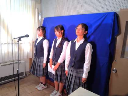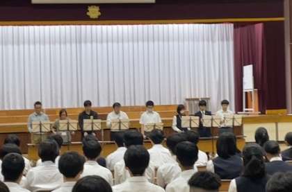 10月14日(火)生徒会朝礼をTV放送で実施しました。前期各委員長から全校生徒へ最後の挨拶があり、活動を通じて学んだこと・伝えたいこと・御礼が述べられました。今まで二中をしっかり支えてくれた3年生、今後は後輩が受け継いでいきます。