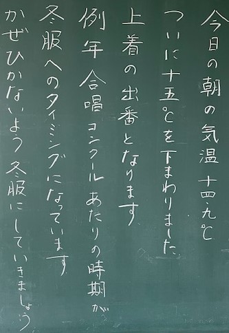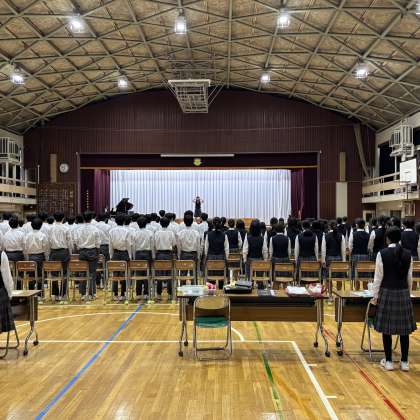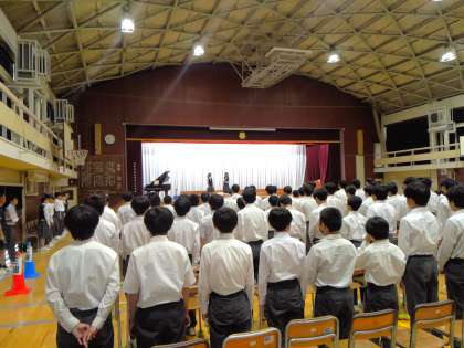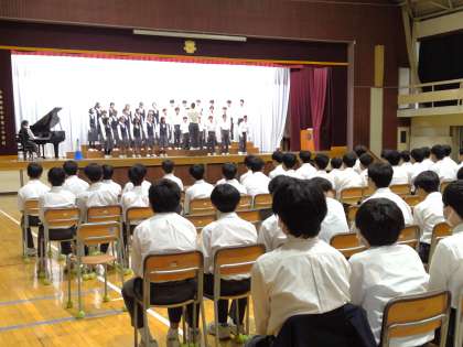 体育館で行える最後の合唱練習でした。声が大きくなってきて体育館に響くほどでした。火曜日の本番が楽しみです。