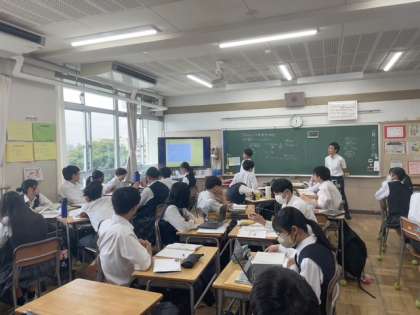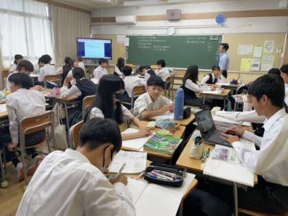 10月16日(木)1年生の社会では「EUの成り立ちと人々の生活の変化」について学習しています。国の印象について話し合いで導入した後、NHK for schoolでEUの成り立ちを理解しました。日本と地理・経済・文化の違いを比較しながら学びました。