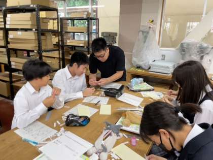 10月15日(水)1年生技術の授業のめあては「材料の強度と丈夫な構造について理解しよう」です。1×1、1×2の強度の特徴やトラス構造(三角形の骨組み)を模型で実習しながら学びました。