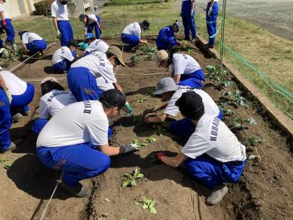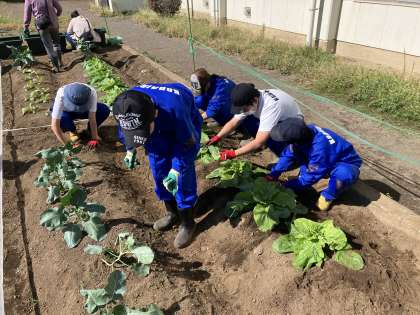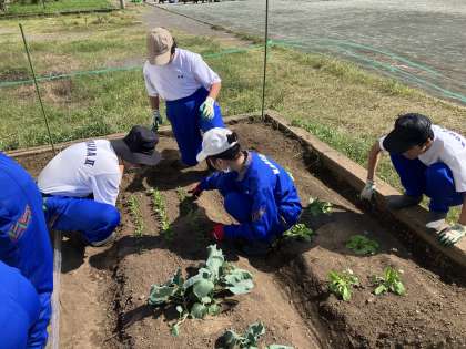 畑の野菜が芽を出しました。今日はたくさんある芽の間引きをしました。野菜の種類に応じて、間引きの仕方を変えて行いました。野菜の状況をみて、追肥をするグループもありました。