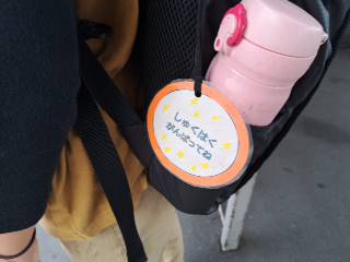 けやき学級の1・2年生が、宿泊学習に行く3年生以上のこどもたちと教員に手作りのお守りを作ってくれました。