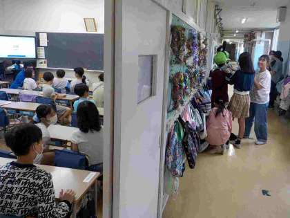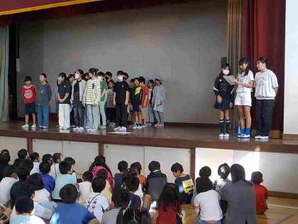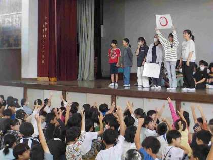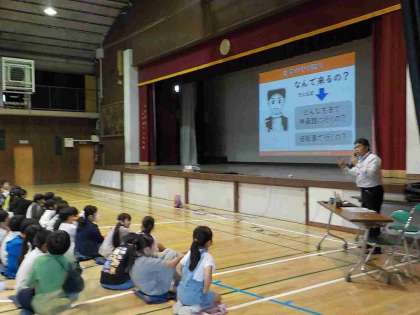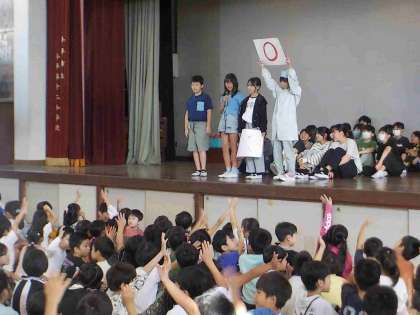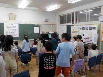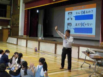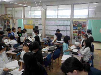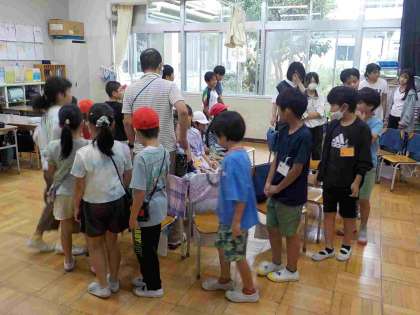 10/15 5年生 理科(授業観察)![]() ![]() ![]() ![]() ![]() ![]() 「流れる水のはたらき」の導入で、川の様子から様々な疑問を見いだし、学習の課題を考えていきました。 多摩川の上流・中流・下流の様子を動画で見て、気付いたことや比較して考えたことなどを発表しました。校内研究で高めようとしている「伝え合う力」に関わる展開でした。 動画のから得られる情報やそれぞれの場所の石の形や大きさなどをもとに自分の考えを発表していました。また友達の考えを参考に川の様子を見る視点を広げていました。 今後の授業が楽しみです。 10/15 4年生 国語(授業観察)![]() ![]() ![]() ![]() ![]() ![]() 管理職が全教員の授業を1時間観察し、各教員の授業改善や指導力向上に役立てる取組です。また教員相互に観察し、意見を交流する教員の学び合いの場にもなっています。 2学期は、校内研究のテーマに関連した授業を実施します。 本日は、4年生の国語と5年生の理科の授業を観察しました。 4年生の国語では、「ごんぎつね」を学習しました。 校内研究のテーマである児童同士の「伝え合い」に重点を置き、自分や友達の考えを伝え合いました。一対一(ペア)で伝え合うことで、登場人物の気持ちを様々な視点で読み取りました。 10/15 ベトナム料理![]() ![]() ![]() ![]() ![]() ![]() 今日はベトナム料理のバインミーサンドとフォーを作りました。「バイン・ミー」とはベトナム語で『パン』という意味です。ベトナムは、かつてフランスの植民地だったので、その名残でバインミーサンドはフランスパンを使って作られることが多いです。 また、フォーの平たい麺は、お米から作られています。どちらも、ベトナムでは朝ごはんに屋台で食べることが多いそうです。今日はたっぷりの鶏ガラからスープを煮だして作りました。 写真2枚目:フランスパンにバインミーサンドの具をはさんだところ 写真3枚目:鶏ガラからスープを煮だしているところ 10/11 特製バターチキンカレー![]() ![]() ![]() ![]() ![]() ![]() 今日は調理員さん特製のバターチキンカレーです。日本でも人気のインド料理です。ルゥを使わず、たっぷりのトマトピューレとバターを使った、スパイスが香るカレーです。仕上げに牛乳と生クリームを入れるので、マイルドで食べやすい味です。 本場インドでは、タンドリーチキン(下味をつけた鶏肉を、金串に刺してタンドールで焼いたもの)をカレーに入れるそうです。 朝からにんにくと玉ねぎを炒める香りが校内にただよっていて、お昼が待ち遠しかったです。コクのある、おいしいバターチキンカレーに仕上がりました。 写真2枚目:トマトピューレの酸味をとばすために煮込んでいるところ 写真3枚目:生クリームと牛乳を入れて、完成したところ 10/11 土曜授業(防災授業)5![]() ![]() ![]() ![]() ![]() ![]() 10/11 土曜授業(防災授業)4![]() ![]() ![]() ![]() マンホールトイレとは、災害時、プールの水を利用する簡易トイレのことです。避難所の衛生面の維持にも役立ちます。 10/11 土曜授業(防災授業)3![]() ![]() ![]() ![]() ![]() ![]() 実際に中に入り、距離感や大きさを体験しました。 10/11 土曜授業(防災授業)2![]() ![]() ![]() ![]() ![]() ![]() 避難所生活に必要な感染症対策備品や掲示に使う表示物などの内容について、実物を見ながら説明を聞きました。 また、避難所生活で利用する飲料水の備えについて、学校の飲料貯水槽を中心に説明を聞きました。 10/11 土曜公開(防災授業)1![]() ![]() ![]() ![]() 1〜5年生は、各教室で学習しました。 6年生は、小平市役所防災危機管理課やCSの学校経営協議会委員の皆様の協力をいただき、体育館や校舎裏で防災倉庫やマンホールトイレなどの防災設備について学びました。 今年度は、NPO「ぶるーべりー愛犬ふぁみりー協会」の皆様にお越しいただき、災害時のペット避難について学ぶブースを新たに設置しました。 ご協力いただきました皆様、大変にありがとうございました。 10/11 土曜授業(セーフティ教室)2![]() ![]() ![]() ![]() KDDIのご協力のもと「SNS」の正しい使い方や身の守り方について学びました。 SNSの特徴である「短い言葉」から起こる「誤解」についてなど、具体的な事例をもとに考えを深めました。 自分の思いをどう正確に伝えるか、また、相手の思いをどう正確に受け止めるか、日頃のコミュニケーションでもうまくいかないときがあります。顔の見えないSNSでは、さらに困難になります。上手なSNSの利活用を考えていきたいです。 10/11 土曜公開(セーフティ教室)1![]() ![]() ![]() ![]() 小平警察署の協力を得て、連れ去り等の犯罪に巻き込まれないための学習を行いました。 ◆「いかのおすし」(こどもたちと確認している合言葉です。) 「いか」…(知らない人に)ついて「いか」ない 「の」…車に「の」らない 「お」…「お」お声を出す 「す」…「す」ぐ逃げる 「し」…大人の人に「し」らせる こどもたちを犯罪から守るには、身を守る方法を「繰り返し」「具体的に」確認することが大切です。困ったときの駆けこみ先や連