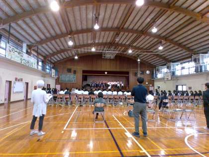 2年生 学年練習![]() ![]() 本番では、練習で培った最高の歌声を響かせてくれることを期待しています! 今日の生徒会黒板![]() ![]() ![]() ![]() かぼちゃのデザインが可愛いですね。 毎日、生徒会黒板を見るのが楽しみです。 パート練習![]() ![]() ![]() ![]() ![]() ![]() 歌い終わるたびに「もっと滑らかに歌おう」「ここの歌い方はこうしよう」と、活発に意見を交換し合っています。よりよい歌唱にするために課題を見付け、すぐに改善しようとする姿勢が素晴らしいです。 【3年生】修学旅行の事後学習発表会![]() ![]() ![]() ![]() ![]() ![]() 発表では、京都の街並みや文化財、またオーバーツーリズムに代表される課題など、多様な内容が取り上げられました。修学旅行を楽しい行事で終えるのではなく、学びのある活動として振り返ることができた様子がうかがえました。まさにスローガン「楽学両道」を体現した3日間になったのではないかと思います。 これまで全4回にわたり総合的な学習の時間で事後学習を進めてきましたが、本日の発表はその集大成といえるものでした。発表することは生徒にとって少なからず緊張や負担を伴いますが、その経験を通して得られる学びも大きいものです。 修学旅行では多くの思い出をつくり、同時に学習面でも確かな成長がありました。本日の発表からも、生徒たちがその意義をしっかり理解していることが伝わってきました。 環境衛生検査![]() ![]() ![]() ![]() 学校薬剤師さんに、教室の黒板検査と照度検査を実施していただきました。生徒が安全で快適な環境で過ごせるように、定期的に検査を行っています。 パート練習![]() ![]() ![]() ![]() きれいな歌声が各クラスから聞こえてきます。 合唱コンクールのポスター![]() ![]() 大変素晴らしい仕上がりとなりました。 合唱コンクール当日は会場に展示しますので ぜひお近くでご覧ください。 保健委員による献立紹介![]() ![]() ![]() ![]() ミルクコーヒー、食パン、ブルーベリージャム、コーンチャウダー、いかのバジルフリッター、千切りサラダです。 「目の愛護デー」に合わせた献立でした。 ブルーベリージャムは小平市内産です! 昼休みの保健室![]() ![]() ![]() ![]() 「1cm差だ」「給食の後だから体重増えてるかも」と楽しそうに測定していました。 廊下では2年生が間違い探しをしていました。 7つの間違い見つかったかな? * 合唱コンクールに向けて![]() ![]() ![]() ![]() 合唱コンクールまで、あと17日 2年生のリハーサルの様子です。 練習は始まったばかりですが 真剣に取り組む姿から、本番への意気込みが伝わってきます。 後期保健委員会![]() ![]() ![]() ![]() 今日の保健委員会では ハンカチチェックの実施方法と点検場所の確認をしました。 生徒会黒板![]() ![]() 合唱コンクールの練習が本格的に始まります! 絵手紙の会![]() ![]() 南校舎1階廊下の掲示板には 「上水南公民館 絵手紙の会」の作品を掲示しています。 10月10日は目の愛護デー![]() ![]() 学生ボランティアさんと一緒に 「目」に関する掲示物を作成しました。 9/11 感謝状をいただきました![]() ![]() 【3年生】修学旅行の新幹線座席・宿舎班決め
