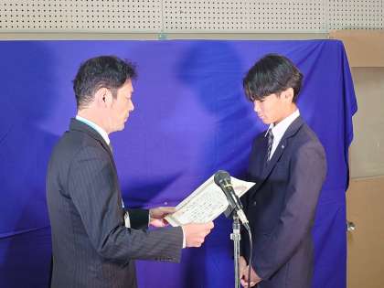11月6日(木)TV放送で朝礼を行いました。サッカー部が第10ブロックサッカー新人大会で都大会出場を決め、表彰しました。