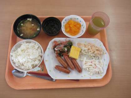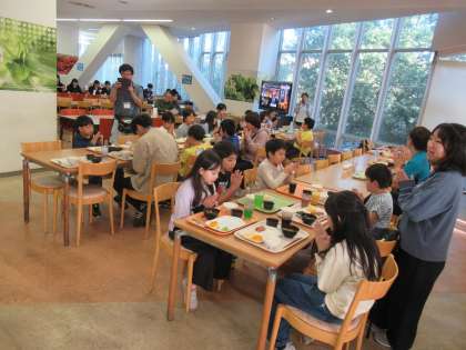食事係のこどもたちがいただきますのあいさつをします。 みんなモリモリ食べています。 【さくら学級】夕食セレクト