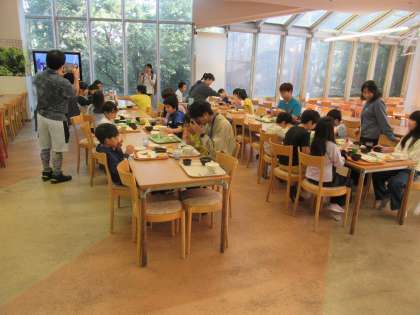 天使チームとアクマチームに分かれて、かえる王子を奪い合います。 こどもたちは大変盛り上がっています。 【さくら学級】夕食です。いただきます。