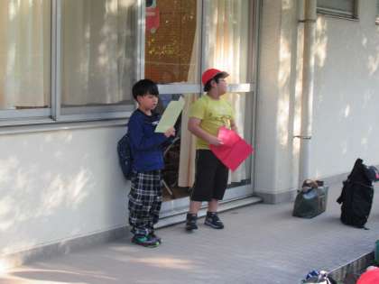 式の進行、代表のあいさつと役割を決めて、退校式を進めます。 これからキッザニア東京に向けて出発します。 【さくら学級】朝食です。