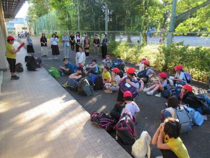 みんな元気によく食べています。 今日はこの後、部屋の片づけ、荷物の整理を行い、キッザニア東京に向けて出発します。 【さくら学級】朝の集い