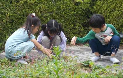 普段は解放されていませんが、立派なブルーベリーの木を見て、驚いていました。 給食で屋上庭園のブルーベリーが出ることがあるので、雑草抜きはその手助けになりました!