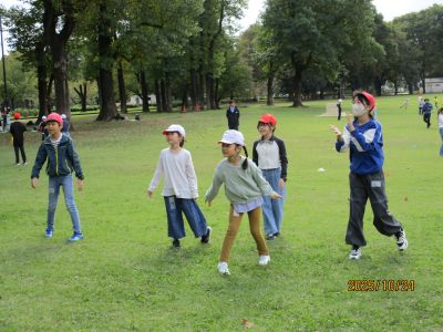 ちょっぴり肌寒い中でしたが、午前中いっぱい昼までたてわり班で思い切り遊びました。 5年生は3年生が楽しめるような遊びを考え、準備してくれました。 秋が深まり、公園の中はたくさんの赤とんぼが飛び回っていました。 お弁当の時間に雨が降ってきて早めに学校へ戻りましたが、楽しい一日となりました。 【全校朝会】「ナイル川を渡るアリ」