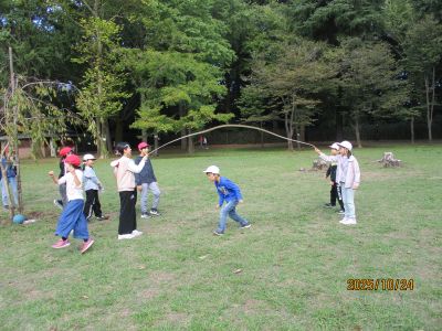 2日目の朝です。 晴天に恵まれ、気持ちのよい朝です。 センター棟の横で朝の集いを行いました。 【さくら学級】室内レク2