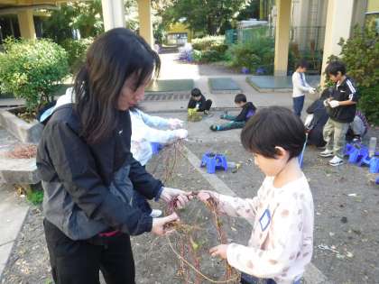 テストを返却した際、間違ったところは赤で直すように指導しています。ご家庭にテストを持ち帰りましたら、見ていただけると幸いです。お子様はどの学習が苦手か分かると思います。 【1年】あさがおのリースづくり