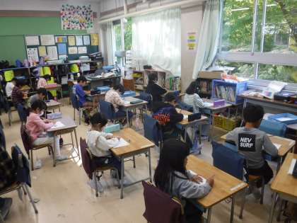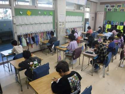 この日、近隣の嘉悦大学で学ぶ留学生の方と交流を行いました。 交流の内容は、来校していただき、 〇一緒に給食をいただく 〇昼休みに一緒に遊ぶ! この2つです。 1学期から嘉悦大学の学生支援センターとこの取組を協議してきました。 今回来校いただいたのは中国からの留学生2名です。 お迎えしたのは4年4組です。 美味しく給食をいただいた後は、 教室内で、一緒にゲームを楽しみました。 この取組は、この日をスタートに毎週火曜日に継続して行っていきます。 来週も留学生の方にはご来校いただけることになっています。 どこのクラスとの交流になるか!? 楽しみにしていてください!