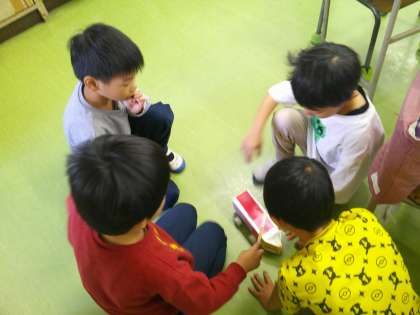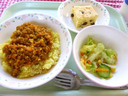 今日、10月30日は「食品ロス削減の日」です。 今日は「食品ロス削減給食」として、「かくれんぼドライカレー」と「おからケーキ」を作りました。 ドライカレーには、いつもは捨ててしまわれがちな「にんじんの皮」「キャベツの芯」がかくれんぼしています。 また、ごはんは防災備蓄食品のアルファ化米100%で炊飯しました。 ドライカレーをかけて食べると、アルファ化米もおいしく食べることができます。 食品ロスの問題の一つとなっている「おから」を使っでケーキを作りました。 真ん中の写真は、「おからケーキ」の生地を天板に流しているところです。 一番下の写真は、焼きあがったケーキをカットしているところです。 「ふっかつかくれんぼドライカレーがおいしかったです!」 「サラダがおいしかったです。」 「おからケーキがおいしかったです!!」 などの感想が書かれていました。 【2年生】おもちゃランド