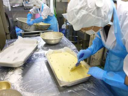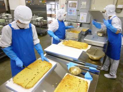 今月は「読書月間」です。 11月の毎週木曜日は、十三小図書室とコラボした給食「本にでてくるおいしいもの」を実施します。 第1回目 は、「ぐりとぐら」という絵本に登場する「ぐりとぐらのカステラ」です。 給食では、ぐりとぐらが作ったようなふわふわのカステラを目指して作りました。 卵を泡だて器でしっかり泡立てて、ふんわりした生地に仕上げました。 焼きあがったカステラは、絵本とおなじように膨らんで、おいしそうにできあがりました。 真ん中の写真は、卵を泡立てているところです。 一番下の写真は、生地をカップに注いでいるところです。 「ナポリタンがおいしかったです。」 「カステラがふわふわしてておいしかったです〜!!」 「ぐりとぐらのカステラがおいしかったです。またつくってください。」 などの感想が書かれていました。 11月5日(水)の給食