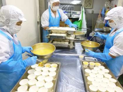 給食委員会では、毎月1回、児童による食育meet放送を行っています。 今回は「さといものお話」です。 給食の里芋コロッケに合わせてお話しました。 【図書コラボ給食】ぐりとぐらのカステラ