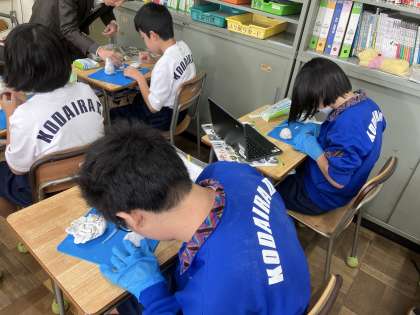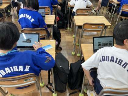 宿泊学習の事後学習をしています。今日は新聞作りで載せる写真をタブレットを使って選びました。タブレットの操作に苦戦している人が多かったです。