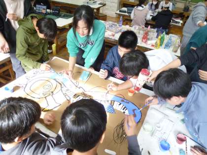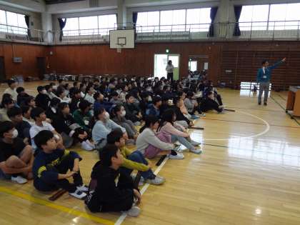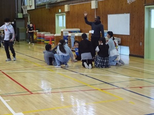 教室と体育館での学習で、ネイティブの方に来ていただき、たくさん英語を使ってコミュニケーションをとりました。 五小の子供たちの積極的に外国語を使ってコミュニケーションをとる姿勢をほめていただきました!貴重な実践の場、子供たちは有意義な時間にできました。