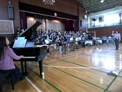 今日は自分の場所を覚え、全体で初めて演奏したり、歌ったりしました。 あと9日。 最後までがんばっていきましょう! 音楽会練習スタート!