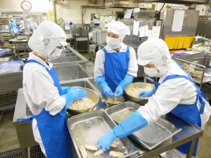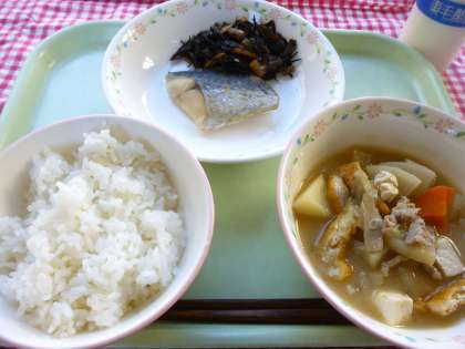 11月24日は、「和食の日」です。 「1124」を「いい日本食」と読む語呂合わせで、この日に決められました。 日本は、海、山、里と豊かな自然に恵まれ、四季折々の旬の食材、行事食、郷土料理、ごはんを中心とした栄養バランスの良い食事と世界に誇る食文化があります。 日本食離れが進んでいますが、日本の伝統的な食文化について見直し、和食文化の大切さについて、あらためて考えてみましょう。 今日の給食は、ごはん、しるものにおかずを組み合わせた和食です。 音楽会にあわせて「西京焼き」を作りました。 今日の音楽会、みなさん゜最強!゜でした!! 真ん中の写真は、魚に下味をつけているところです。 一番下の写真は、魚が焼きあがったところです。 「さかながおいしかったです!」 「ひじきがおいしかったです。またつくってください。」 「とんじるがおいしかったです。」 などの感想が書かれていました。 11月21日(金)の給食