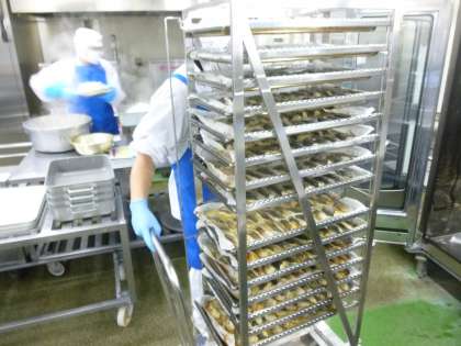 「食品ロス削減給食」として「もちもちおからチヂミ」を作りました。 おからを活用して、食品ロス削減です。 また、今日は「給食DE世界旅行」として「韓国料理」を作りました。 チヂミは、米粉、でんぷん、白ごま、おから、だし汁、ごま油、豚肉、にら、にんじん、たまねぎを混ぜ合わせて作りました。 天板に生地を流し、オーブンで焼きました。 真ん中の写真は、天板に生地を流しているところです。 一番下の写真は、焼きあがったチヂミを人数分にカットしているところです。 「キムチチャーハンがおいしかったです。」 「チヂミがもちもちしていておいしかったです。」 「スープがおいしかったです。」 などの感想が書かれていました。 【2年生】ランチルーム