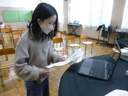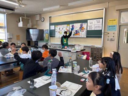 明後日11月23日は「小ねぎ記念日」です。 今日の給食では、小ねぎと長ねぎを使った「ねぎチャーハン」を作りました。 「野菜チップス」は4種類の野菜(じゃがいも、さつまいも、かぼちゃ、れんこん)を使い、それぞれ薄く切ってから揚げました。 真ん中の写真は、「野菜チップス」を揚げているところです。 一番下の写真は、スープに卵を入れているところです。 卵がふわふわになるように仕上げました。 「ねぎチャーハンがおいしかったです。」 「やさいチップスがカリカリしてておいしかったです。」 「かぼちゃがあまくておいしかったです。」 「ちゅうかたまごスープおいしかったです。」 などの感想が書かれていました。 【1年生】たんぽぽさんによる本の読み聞かせ