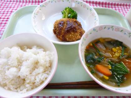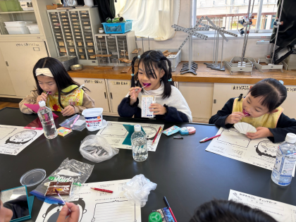 なぜ歯みがきが大切なのかを教わった後、赤い染め出し液を歯に塗って、歯垢が残っている部分をよく観察しました。 歯科衛生士さんの説明に合わせて、「2本ずつ20回みがく」ように丁寧にみがいていくと、歯が白くピカピカ・ツルツルになり、「すっきりして気持ちがよかった」「家でも朝晩の歯みがきをがんばりたい」という感想が多くあがりました。 ぜひご家庭でもお子さんに励ましの声掛けと、子どもが一通りみがいた後の仕上げみがきをお願いできればと思います。 12月5日(金)の給食