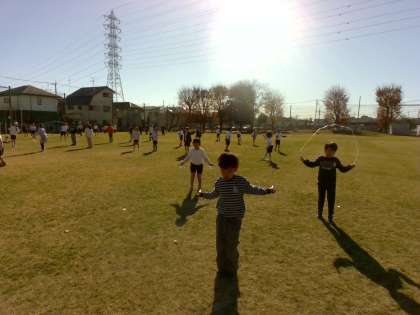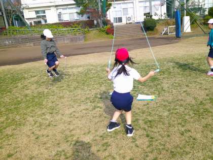 12月に入り、1年生全員が登校することができました。 画像は、元気よく外遊びをしているこどもたちの様子です。 【1年生】なわとび月間