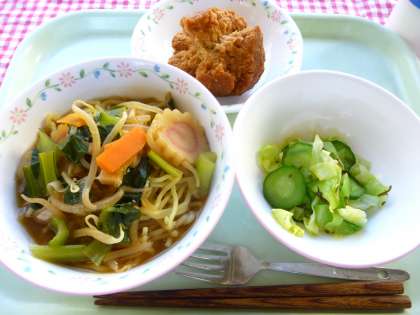 今日は「3年1組のリクエスト給食」です。 「しょうゆラーメン」をリクエストしてくれました! 「サーターアンダギー」は、沖縄料理です。 給食では、小麦粉、ベーキングパウダー、たまご、油、さとうを混ぜた生地を丸めて、油で揚げて作りました。 真ん中の写真は、、サーターアンダギーの生地を成形しているところです。 一番下の写真は、サーターアンダギーを揚げているところです。 「しょうゆラーメンがおいしかったです。」 「サーターアンダギーがサクサクしてておいしかったです。」 などの感想が書かれていました。 12月3日(水)の給食