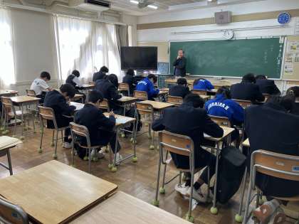11月13日(木)2日目の期末テストは、英語・社会・音楽を実施しました。英語はリスニングテストも行っています。