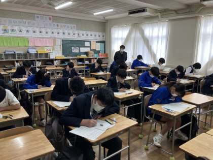 G組は今日から3日間、定期考査をしています。今日は社会と理科のテストをしました。みんな集中して問題を解いていました。