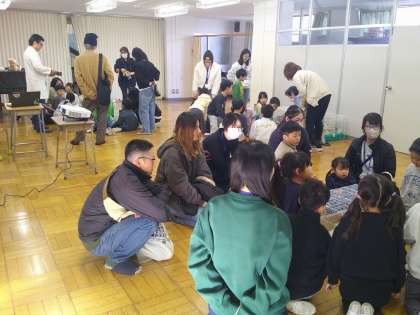 中休みランチルームでお話会を行いました。集まった児童は「おでんせんそう」「じごくのさたもうでしだい」などのお話でたのしみました。