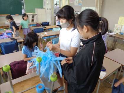 中休みに6年生のお兄さん、お姉さんんが手伝ってくれています。