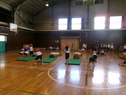 1年生は今、体育館体育で、とびばこに挑戦しています。