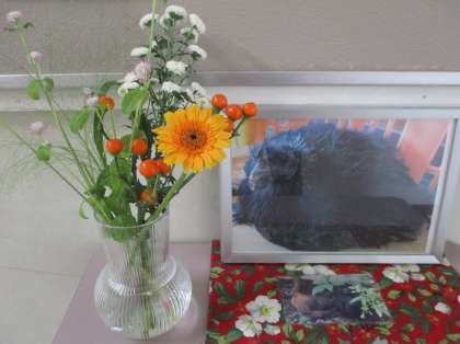 クロンさんが亡くなってから、校長室も学校飼育舎も寂しいです。校長室前には、以前にご案内の通りクロンさんの写真を置き、いつでも会えるようにしています。